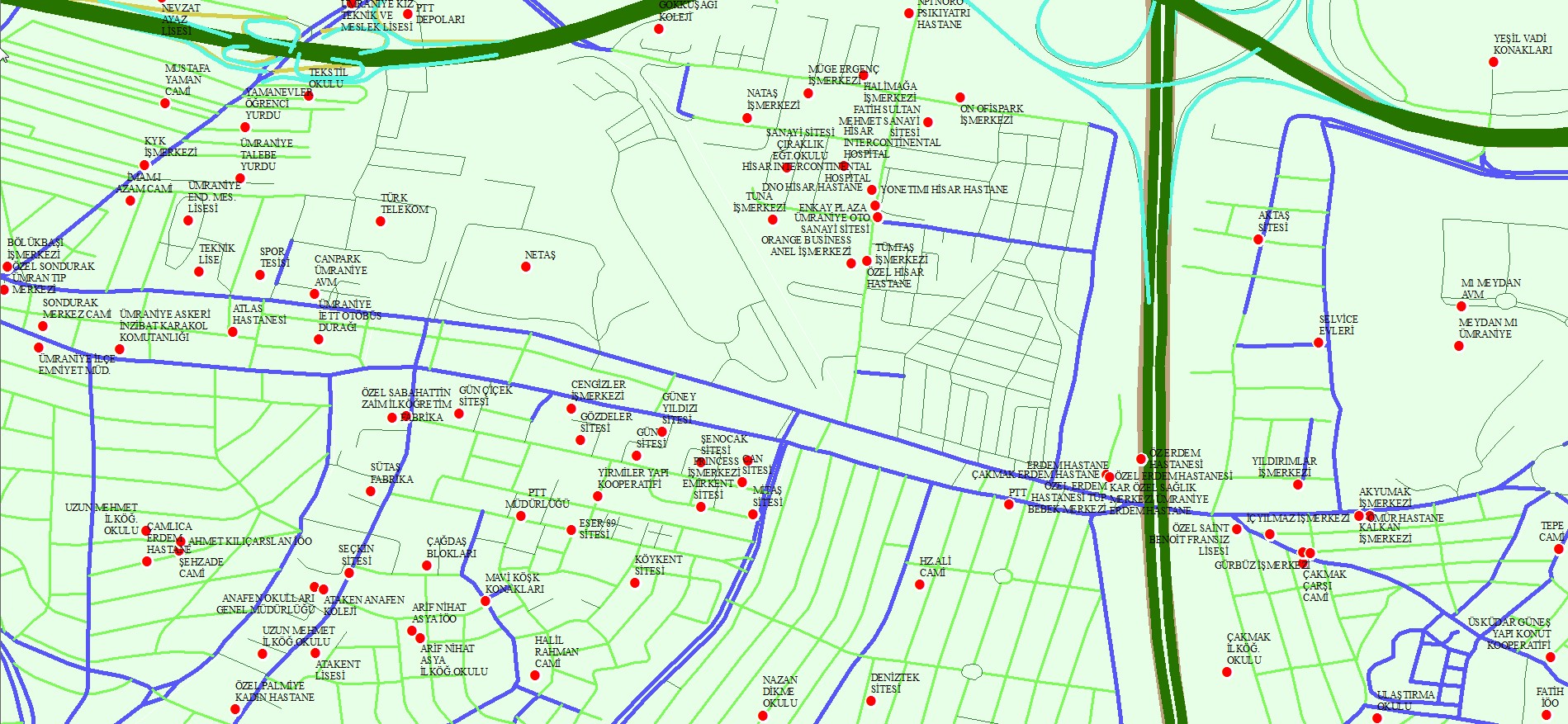 Konut Sitesi, Lojman, ulaşım, metro, iskele, Kamu kurumu, büyük şirketler, Sağlık Kurumları, Okullar, Üniversiteler gibi büyük kurumlardan oluşan Önemli Noktalar Seti.