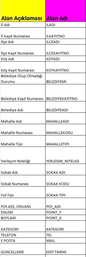 UAVT (Ulusal Adres Veritabanı) sistemine uygun bir şekilde tasarlanan POI veritabanı.